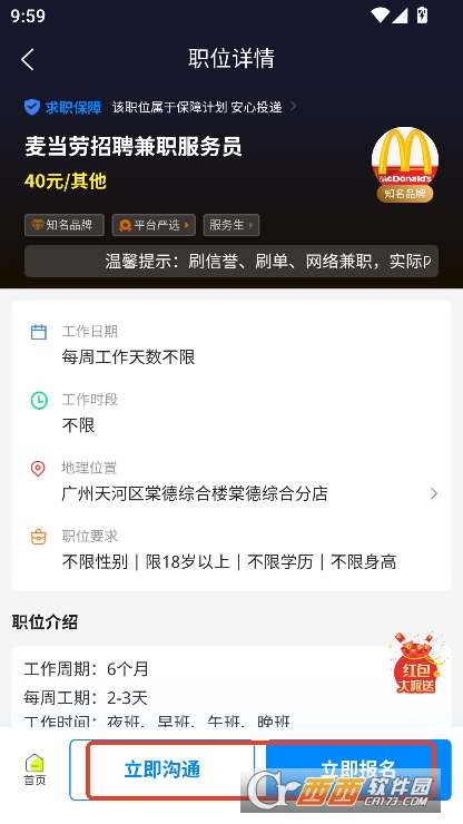 严格信息审核:为保障用户权益,软件对发布的每一个岗位信息和入驻的企业都进行严格审核。通过多种方式核实企业资质,查看企业营业执照、经营状况等,确保企业真实可靠。对岗位信息的真实性、合法性进行把关,剔除虚假、欺诈性岗位,为用户营造安全、靠谱的兼职求职环境。