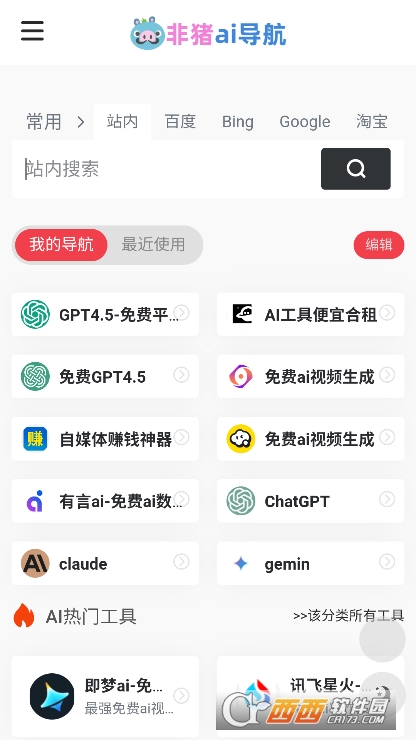 多元工具集成:非猪AI导航收纳了横跨文本写作、图像处理、视频制作、音频合成等15大领域的海量AI工具。无论是需要创作一篇高质量文章,还是想为图片增添创意特效,亦或是制作专业的视频,用户都能在该app中找到对应的得力工具,真正实现一站式满足各类创作需求。