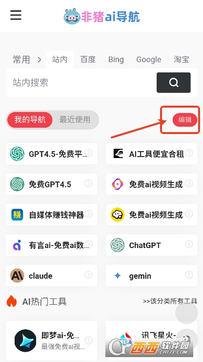 非猪ai导航app安卓版客户端下载是一款汇集了海量AI功能的实用合集导航软件。内置多项搜索引擎,可以通过关键词进行快速搜索。同时软件自带热门工具推荐,点击需要的功能就能一键跳转官网进行使用,支持自定义编辑添加。拥有多样化的AI工具分类,通过导航栏可以一键分类直达,快速使用,打造高效便捷的操作体验。