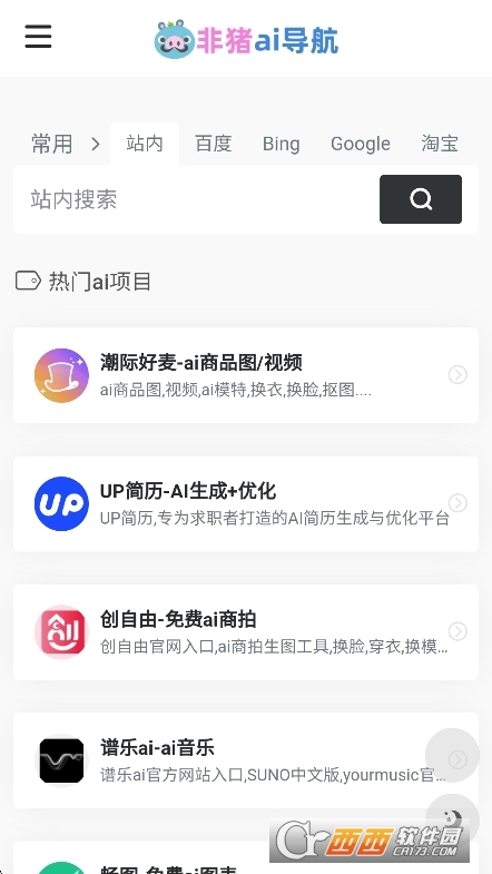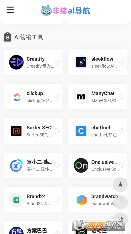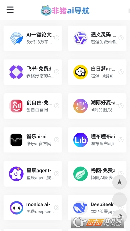 非猪AI导航是一款专注于AI领域的导航类软件,核心定位是“收录多个AI领域的顶尖工具,支持一键直达访问,每日更新最新AI产品动态,为用户提供资源丰富全面、操作便捷且免费使用的AI工具导航服务的实用类应用”。它聚焦于为用户搭建高效的AI工具获取通道,成为连接用户与各类AI工具的一站式导航中枢。
