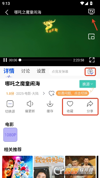 4,点击剧集就能在线播放,收藏转发与弹幕投屏