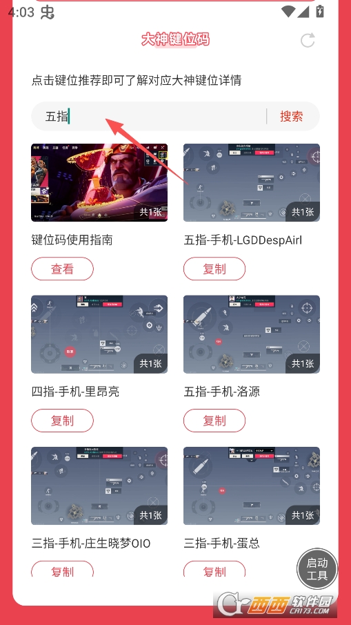 进入软件后你可以搜索关键词查看大神的键位方案