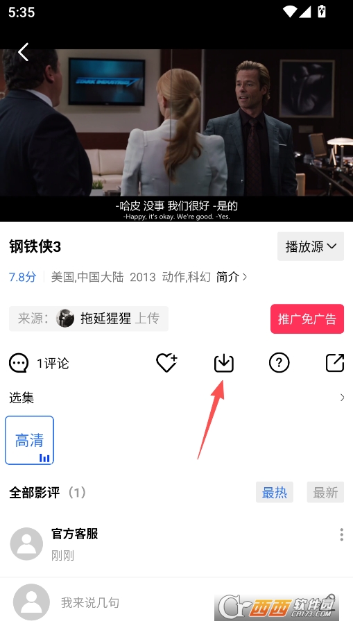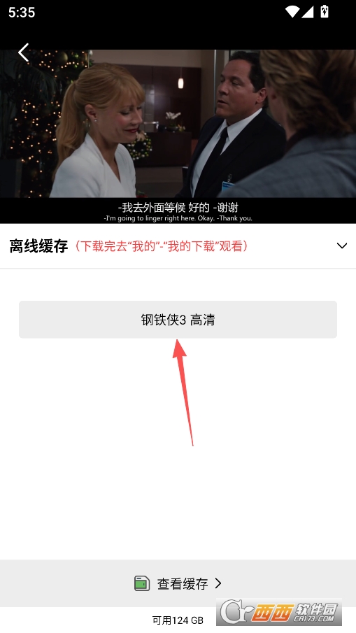 在电影的播放界面中间可以找到下载按钮