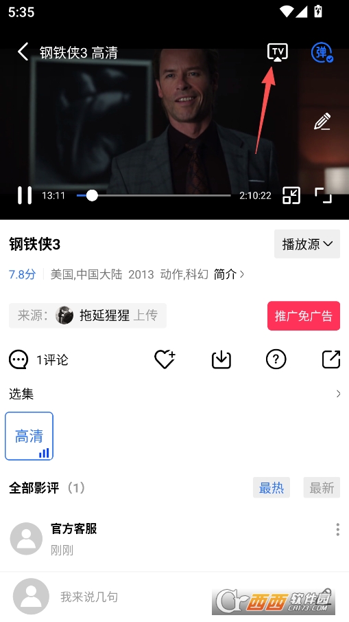 在电影的播放界面点击右上角按钮