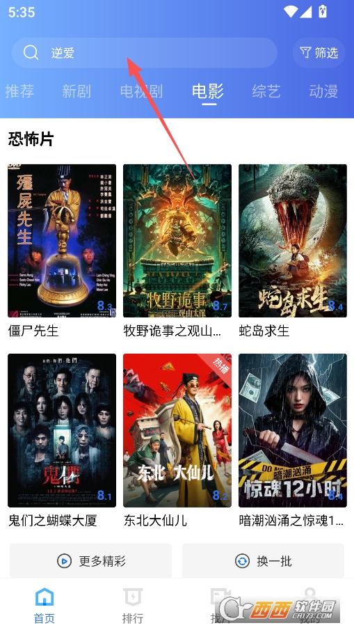 进入软件主页后点击上方搜索框输入关键词找到想看的电影