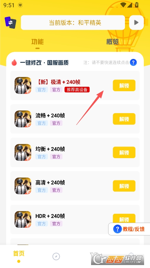 这是一款专注于和平精英画质优化的工具类软件,核心靠解锁画质与帧率上限的功能吸引玩家。适合所有想提升游戏体验的和平精英玩家。软件界面设计直观,功能按钮一目了然。就算是新手,跟着简单指引也能快速上手操作。在西西就能下载安装,安装包不大。运行时占用内存少,不会影响游戏本身的运行。