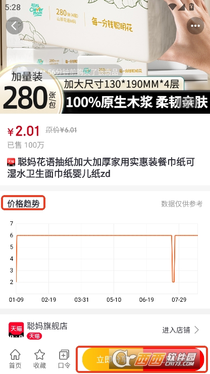 2,点击感兴趣的商品就能查看价格趋势直接购买