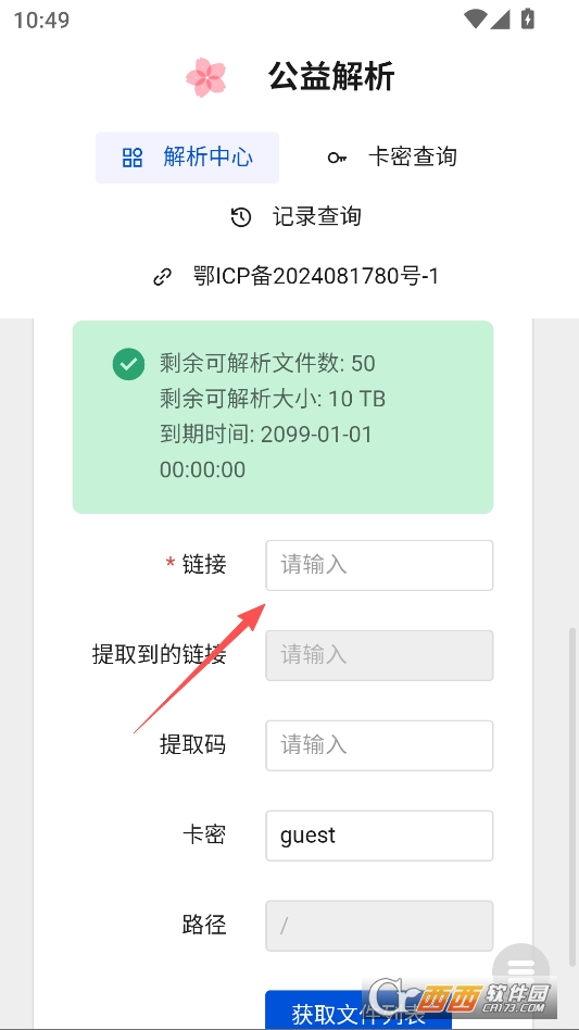 进入软件主页后下拉找到链接框,输入你想要解析的网盘链接