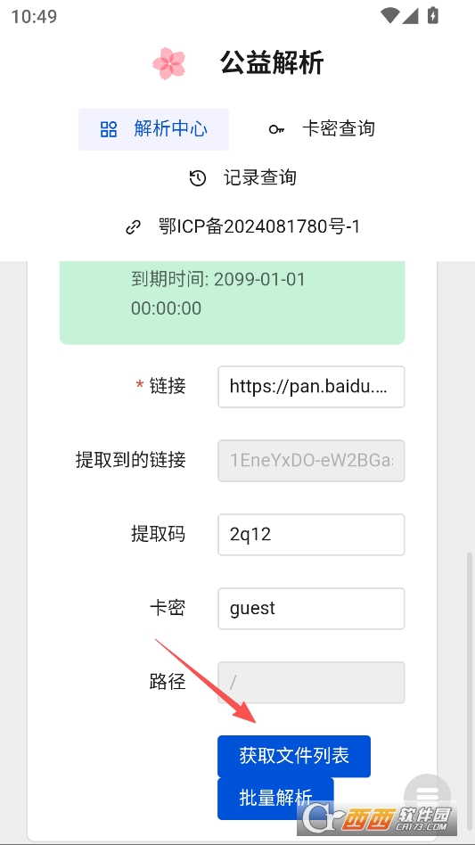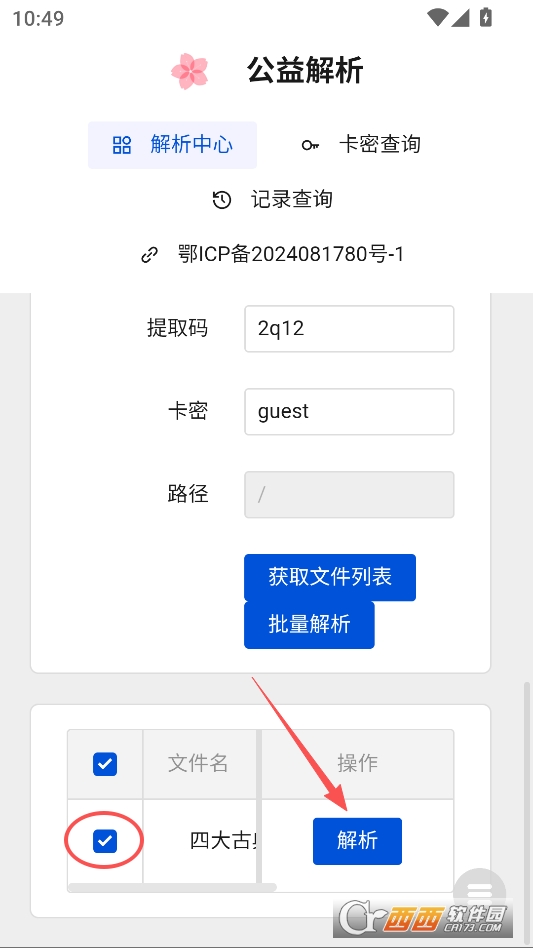 下拉找到文件列表结果,勾选你想要下载的文件,点击解析即可