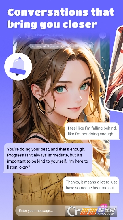 1、“专注虚拟角色互动”定位清晰,体验纯粹:特色在于专注于AI虚拟角色互动,不添加冗余功能,所有设计都围绕提升角色互动体验展开。用户打开软件就能聚焦于与角色的对话,不会被无关信息干扰,这种纯粹的定位让喜欢虚拟角色互动的用户能更专注地享受交流过程。