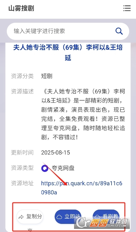 3、整合夸克网盘资源,提升获取效率:整合了夸克网盘资源,用户找到所需资源后,可借助夸克网盘快速下载或在线观看,避免了资源下载过程中的繁琐步骤和等待时间。这种资源整合模式进一步提升了资源获取的效率,让用户能更顺畅地获取和使用影视资源。