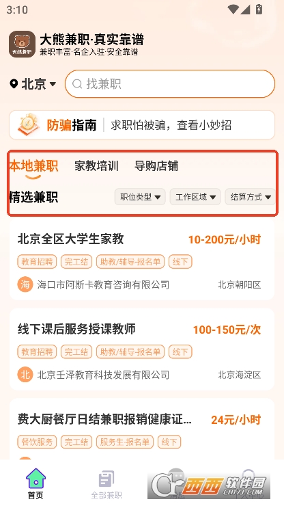 大熊兼职app官方最新正式版是一款专业的兼职招聘求职平台,与全国范围内的兼职用人单位展开深度合作,提供海量线上兼职岗位信息。根据定位可以获取附近的本地岗位,还能根据职位类型,工作区域,结算方式进行筛选排序,为用户提供多样化的岗位选择。平台提供详细的兼职信息介绍,用户可以通过平台直接线上报名,与用人单位进行一对一交流咨询,获取心仪岗位。