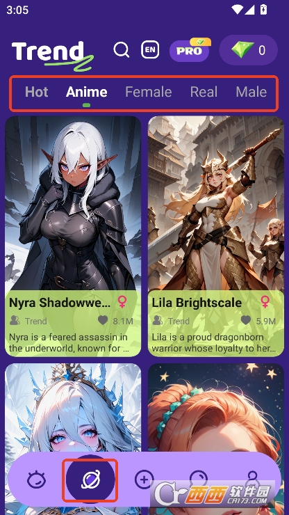 多元AI角色库:涵盖多种风格与设定的AI角色,从甜酷动漫少女到沉稳职场男性,从古风侠客到科幻机器人,角色人设细腻饱满,对话风格也各具特色,能满足用户闲聊解闷、情感倾诉、创意探讨等不同聊天需求,如动漫女性、真实男性等类型角色可供选择。