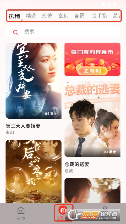 提供海量短剧资源浏览与搜索,涵盖古代权谋、现代言情、恐怖玄幻等多种题材,支持按分类或关键词查找内容。用户可在首页快速浏览每日推荐,也能通过剧场板块按题材筛选,搜索栏输入剧名或关键词即可精准定位目标剧集。