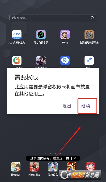 2、点击继续后,获取悬浮窗权限