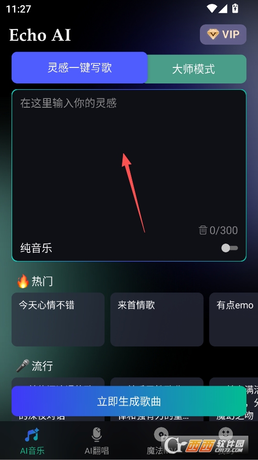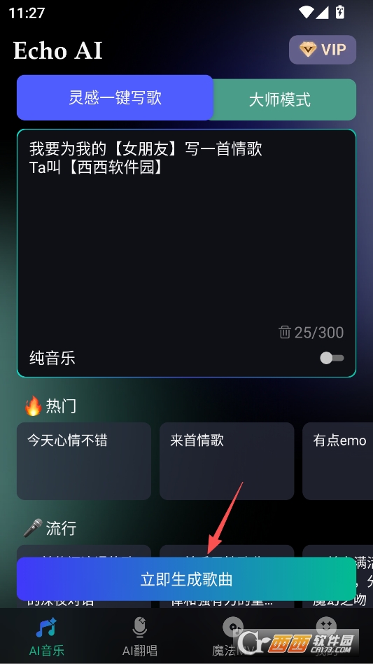 这是一款聚焦AI音乐生成的创作类软件,核心靠“一键生成+零门槛操作”吸引用户。适合想做音乐但没基础的人,不管是学生、自媒体创作者,还是单纯喜欢音乐的人都能用。软件界面设计很清爽,功能按钮都围绕音乐生成分开。风格选择、需求输入、生成管理的入口都很清晰,不用在复杂的菜单里找功能,打开就能开始创作。在西西就能直接下载,安装包体积不大。运行起来很流畅,生成音乐的速度也快,就算是生成较长的音乐片段,也不用等太久,使用体验很顺畅。