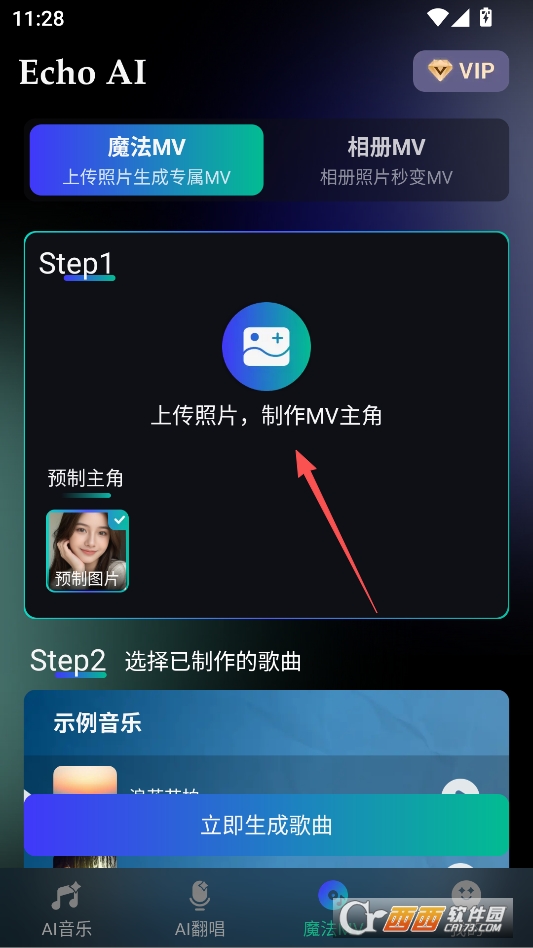 生成完歌曲之后,还可以点击下方魔法MV,导入照片或者视频,为你生成MV