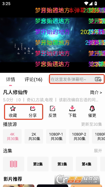 4,点击资源就能在线播放,收藏分享与弹幕互动