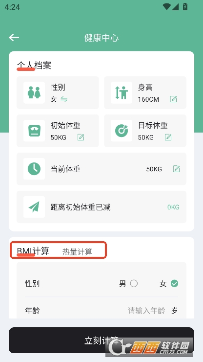1,首页可以记录个人档案以及BMI计算,热量计算等功能