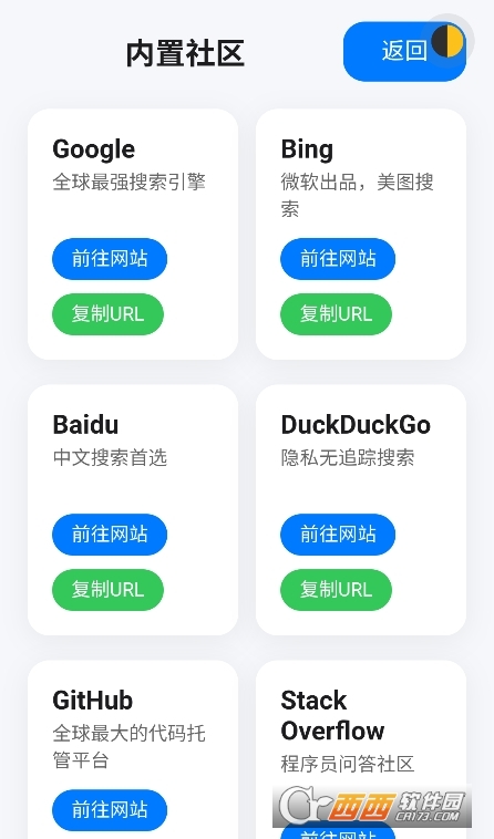 1、在线网页快速跳转功能:在应用界面,清晰罗列了集成的各类在线网页分类,如“搜索引擎”“压缩工具”“密码工具”等。用户点击对应分类下的具体工具选项,如点击“谷歌搜索”,即可在当前应用内直接跳转到谷歌搜索网页,进行信息检索;点击“压缩工具”,则会跳转至在线压缩网页,可选择本地文件进行压缩操作,无需在浏览器中另行搜索与打开,操作简单、快捷。
