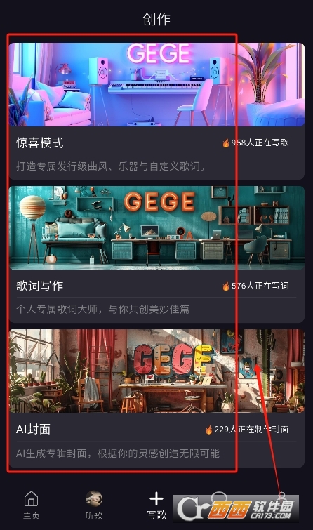 歌歌AI写歌app下载官方正版通过输入创作灵感或关键词,可以自动生成歌词、作曲和编曲。此外,用户还可以随意修改生成的内容,以满足个性化需求,支持将原创音乐一键发行到各大音乐平台,无需复杂的流程,让用户的音乐作品能够被更多人听到。