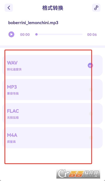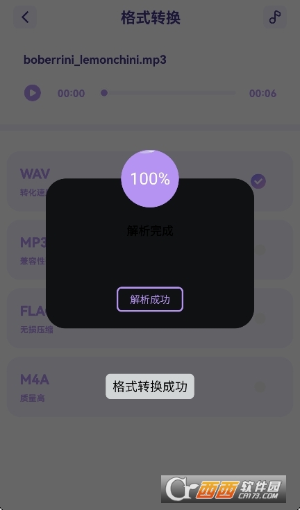 3、音频格式转换:支持多种音频格式(如mp3、aac、m4a、flac、wav、amr)之间的相互转换,满足不同设备和平台的需求。