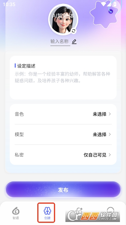 轻.语AI安卓版客户端是一款多功能的AI智能体对话问答软件,内置deepseekV3,豆包,文心一言,智谱,MiniMax,讯飞星火,京东等多种AI大模型,提供海量智能体在线对话,能够根据用户的文本进行智能回复。还支持自定义创建,只需输入名称,设定描述,选择音色,模型与公开程度就能快速创建发布,满足不同用户的使用需求。
