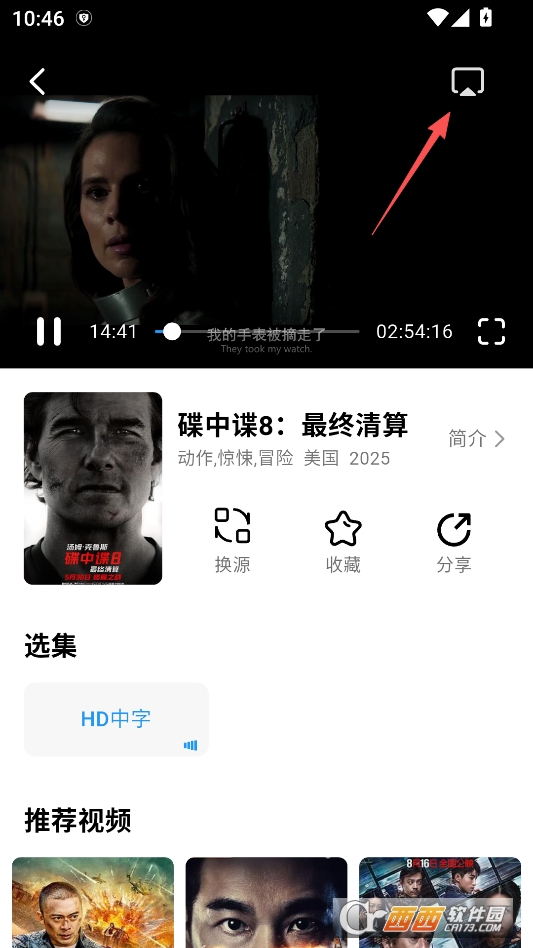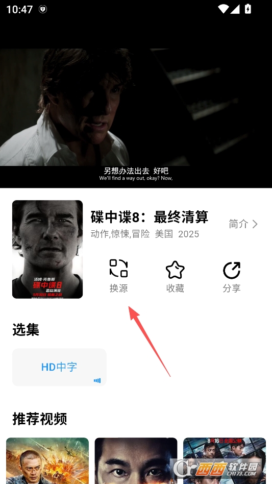 如果播放卡顿的话,可以点击播放界面中间的换源按钮