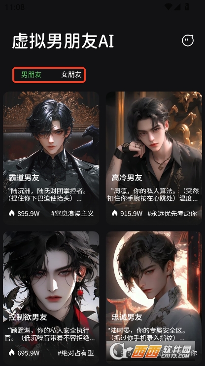 虚拟男朋友AI官方版下载是一款AI虚拟角色在线实时互动的聊天软件,内置丰富的AI角色模型,涵盖霸道男友,高冷男友,忠诚男友,元气女友,撒娇女友,御姐女友等,为用户提供都多样化的聊天选择。点击角色就能直接开始对话,AI角色会根据用户的语气,文字进行符合自己人设的回复对话,满足不同用户的使用需求。