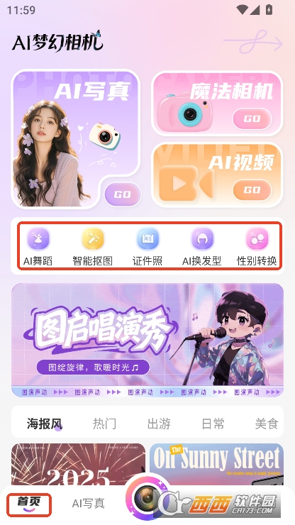 AI梦幻相机app官方版下载是一款便捷实用的多功能图像拍摄编辑软件,提供AI写真,AI视频,AI舞蹈,智能抠图,证件照片,换发型,转换性别等多项功能,涵盖海报,出游,日常,美食,夏天 ,生日等多种素材分类,点击就能一键制作同款,通过上传本地图片进行自定义编辑完成创作,满足不同用户的使用需求。