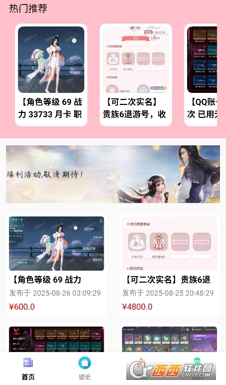 1、热门游戏账号全覆盖,选择多:平台收录《王者荣耀》《蛋仔派对》《火影忍者》等多款热门游戏账号,涵盖不同等级、皮肤/道具配置的账号类型。无论是想要全皮肤的《王者荣耀》账号,还是高段位的《蛋仔派对》账号,都能快速找到,无需跨平台筛选。