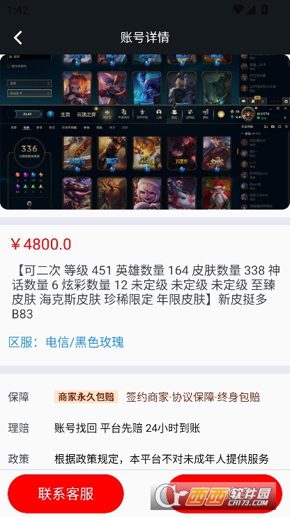 2,点击感兴趣的账号可以了解详情与联系客服购买