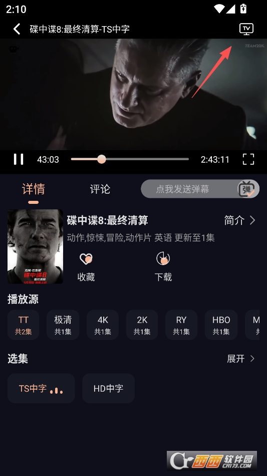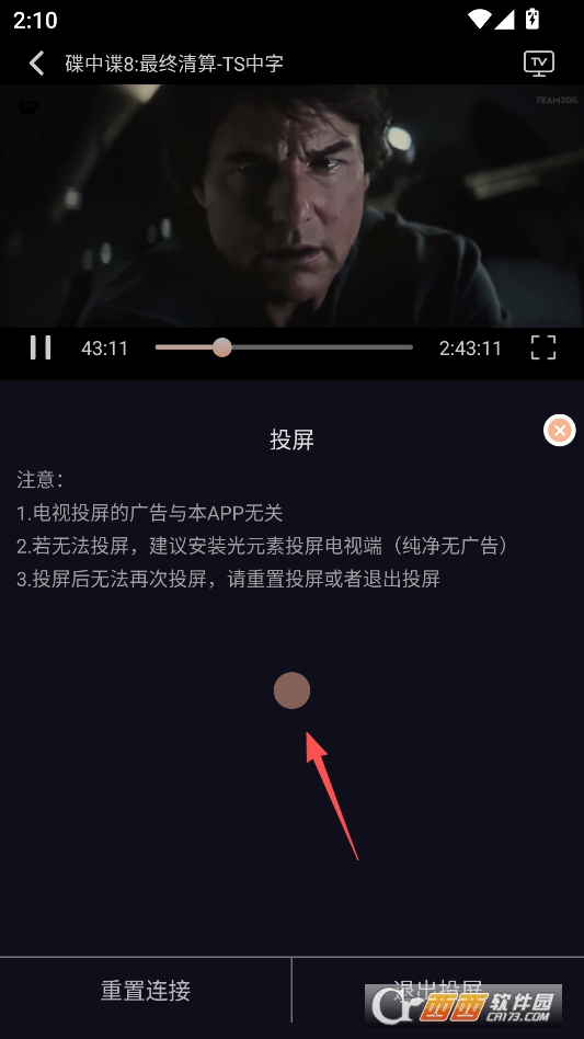 找到后点击播放进入播放界面,点击右上角的小电视按钮开始投屏