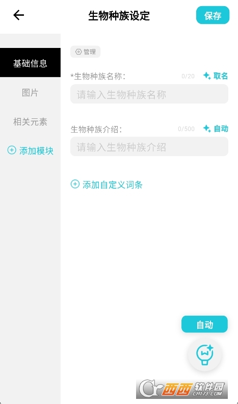 1、全维度设定管理:区别于普通文档工具,创新性地将架空世界的设定拆分为多个可独立管理的模块,如种族设定、地理地图、历史时间线、势力关系等,用户可分模块精细化创作,同时支持模块间关联联动,确保世界观逻辑自洽。
