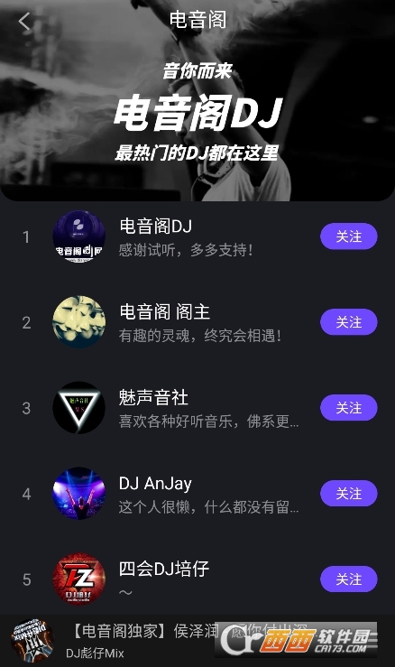电音阁dj音乐软件下载最新版是一款dj音乐软件,提供丰富的免费dj音乐资源库,涵盖了精彩的特色dj音乐合集,非常受欢迎,还有超受欢迎的dj主播都在这里,发现更多舞曲音乐,获得精彩的优秀使用体验,非常出色,感兴趣的小伙伴们欢迎来下载吧。