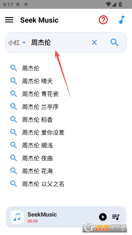 然后输入关键词开始搜索歌曲