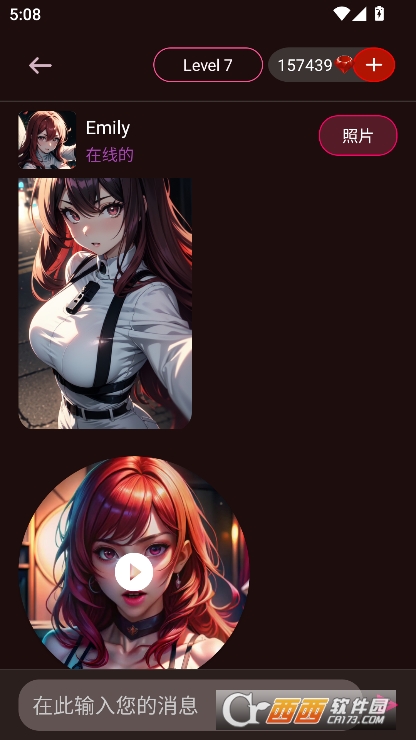 多形式内容互动:支持文字聊天这一基础互动形式,同时包含视频留言查看、照片浏览功能,用户能通过视频看到虚拟女友的动态形象,通过照片了解其设定场景,部分场景还可根据用户需求生成角色照片,让互动不再局限于文字,更具画面感和真实感。