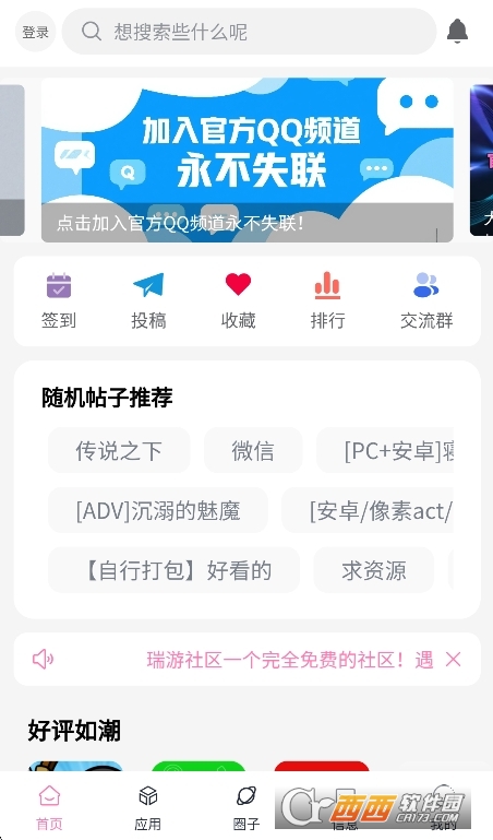 瑞游社区app正版下载安卓版是一款非常受欢迎的精彩资源分享软件,打造专业的软件社区,还有丰富的分享圈子,非常精彩,为大家准备综合资源,提供优秀的极速下载渠道,非常好用,感受多种多样的特色用法,感兴趣的小伙伴们欢迎来下载试试吧。