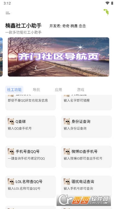 提供“多功能工具聚合服务”,把各种实用小工具整合到一起。比如有日常用的计算器、单位转换器,还有找资源用的文件检索、链接解析工具,不用再单独下载工具类APP,打开“楠鑫社工小助手”就能直接用,满足多场景使用需求。