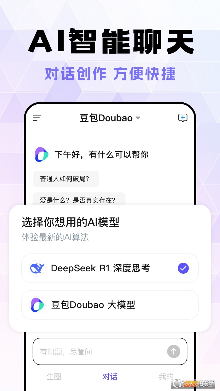 第一个主打功能是“AI对话”,能像朋友一样跟你聊天互动。你可以跟它吐槽日常、聊兴趣爱好,也能问它生活常识、专业知识,它的回复很贴心,还能根据你的语气调整交流风格,不会像机器一样冷冰冰,聊起来很自然。