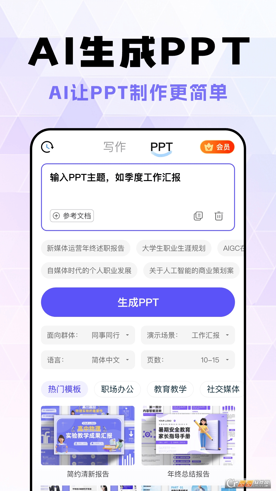 第二个主打功能是“智能写作+PPT生成”,专为办公和创作设计。写报告、写文案、写演讲稿,输入主题和要求,智能写作就能生成初稿;需要做PPT,告诉它内容框架和风格,几分钟就能生成完整的PPT,还能调整版式和配色,大大节省办公时间。