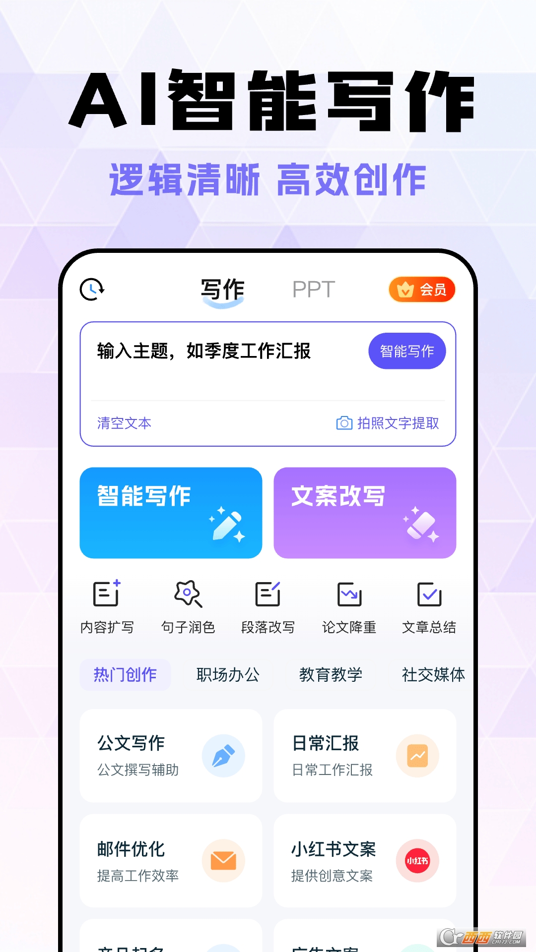 提供智能写作服务,逻辑更加清晰高效