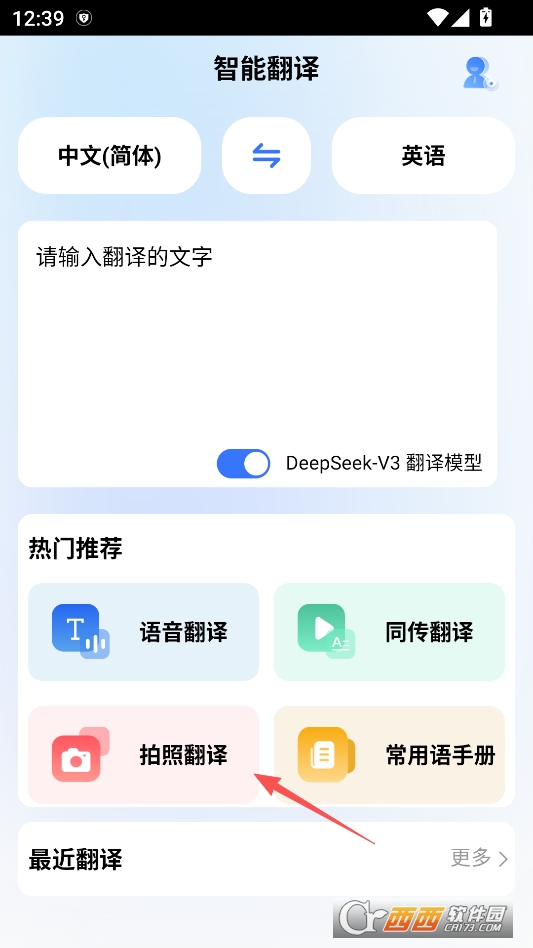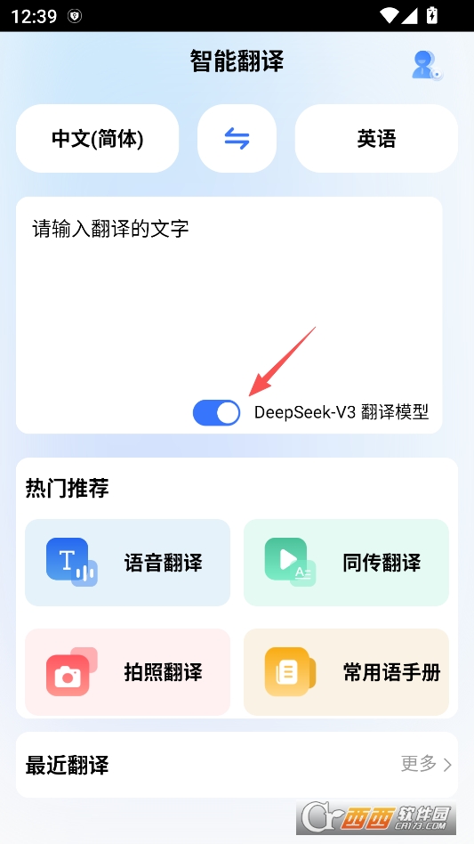 回到主页后,还可以开启deepseek翻译模型功能