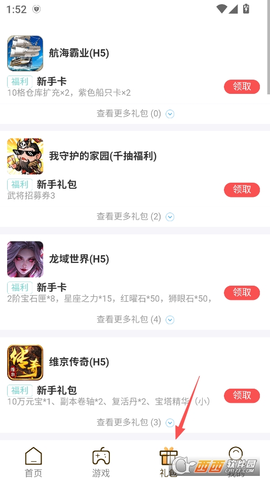 也可以直接点击主页下方的礼包专区,看看哪些游戏都有礼包可以领取