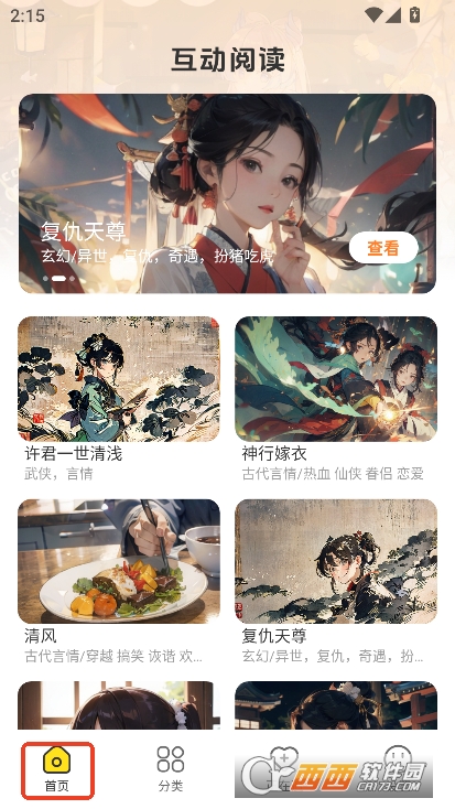 互动阅读app2025全新版官方下载是一款以屏幕互动为特色的小说阅读软件,拥有海量热门互动书籍资源,涵盖武侠仙侠,玄幻异世,都市言情,青春校园,悬疑推理,穿越虐恋等题材分类,为用户提供多样化阅读选择。点击感兴趣的书籍即可直接进入互动阅读模式,通过点击屏幕的方式推进剧情内容,为用户带来沉浸式的阅读体验。