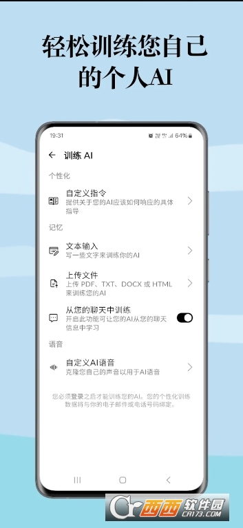1、“自主训练无限制,AI适配性强”:软件创新推出“全场景自主训练”功能,打破AI功能固定的局限。用户可上传任意类型数据进行训练,训练方向无限制,训练过程支持实时调整;训练完成后,AI会基于训练内容优化回答逻辑,例如企业导入客户服务话术库后,AI可精准回复客户咨询,个人导入学习笔记后,AI可辅助梳理知识点,让AI真正贴合用户的使用场景与需求。