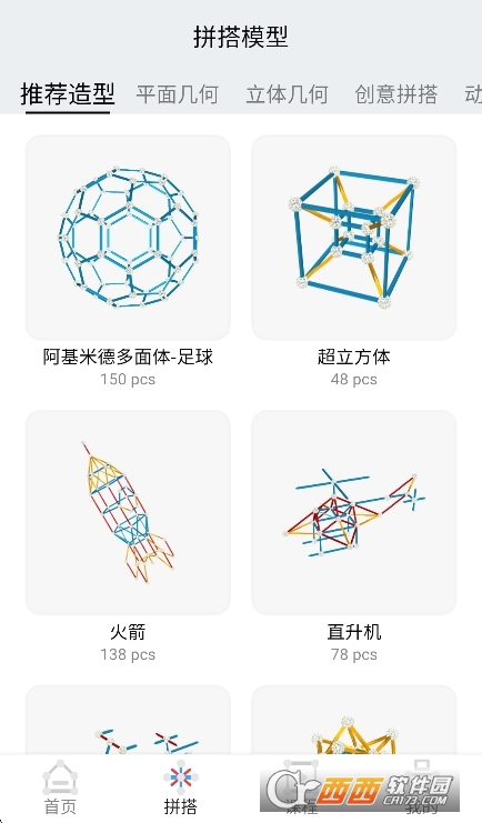 5、动态更新模型库:包含200多个从基础到复杂的几何结构模型,满足不同年龄段用户的探索需求。