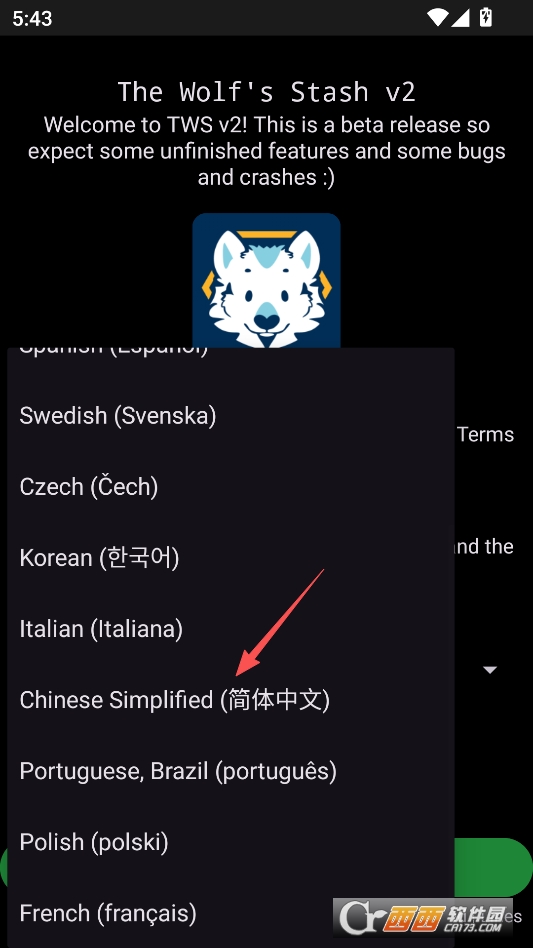 首次进入软件,在此界面即可调整语言,点击语言选项