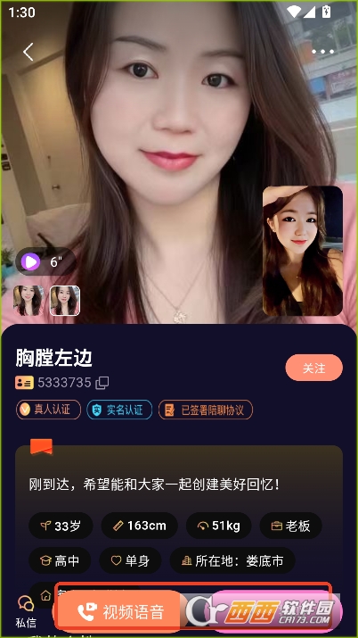 2,点击用户头像即可获取其个人资料和在线视频语音私聊