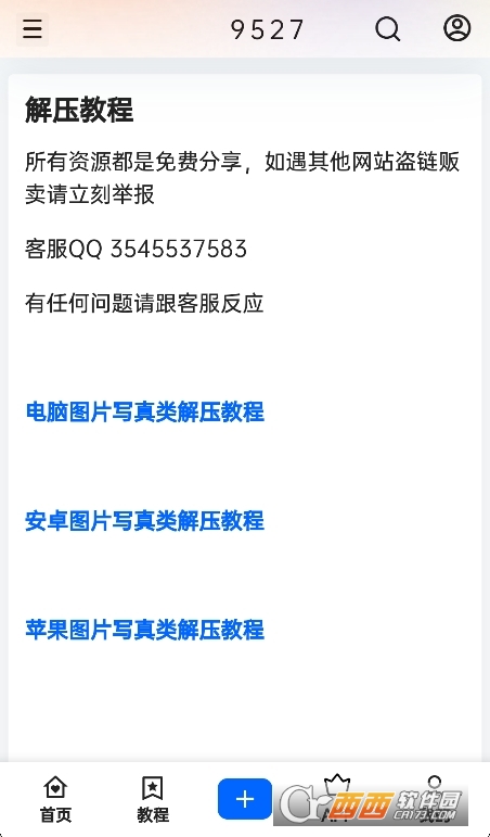 9527资源社app是一款专注精品资源分享的免费下载平台最新版,核心覆盖精美图片、热门游戏、实用素材等多元资源类型,适配有资源获取需求的各类用户(如设计从业者找素材、游戏玩家寻资源、普通用户存图片),覆盖工作、娱乐、学习等多场景资源使用需求。打破传统资源平台“分类混乱、收费门槛高”的局限,整合十万+精品资源库并全部免费开放,无需付费会员或积分兑换即可下载,同时优化资源分类与检索逻辑,让用户无需在多个平台零散找资源,实现“一站式资源获取”,大幅提升资源查找效率。